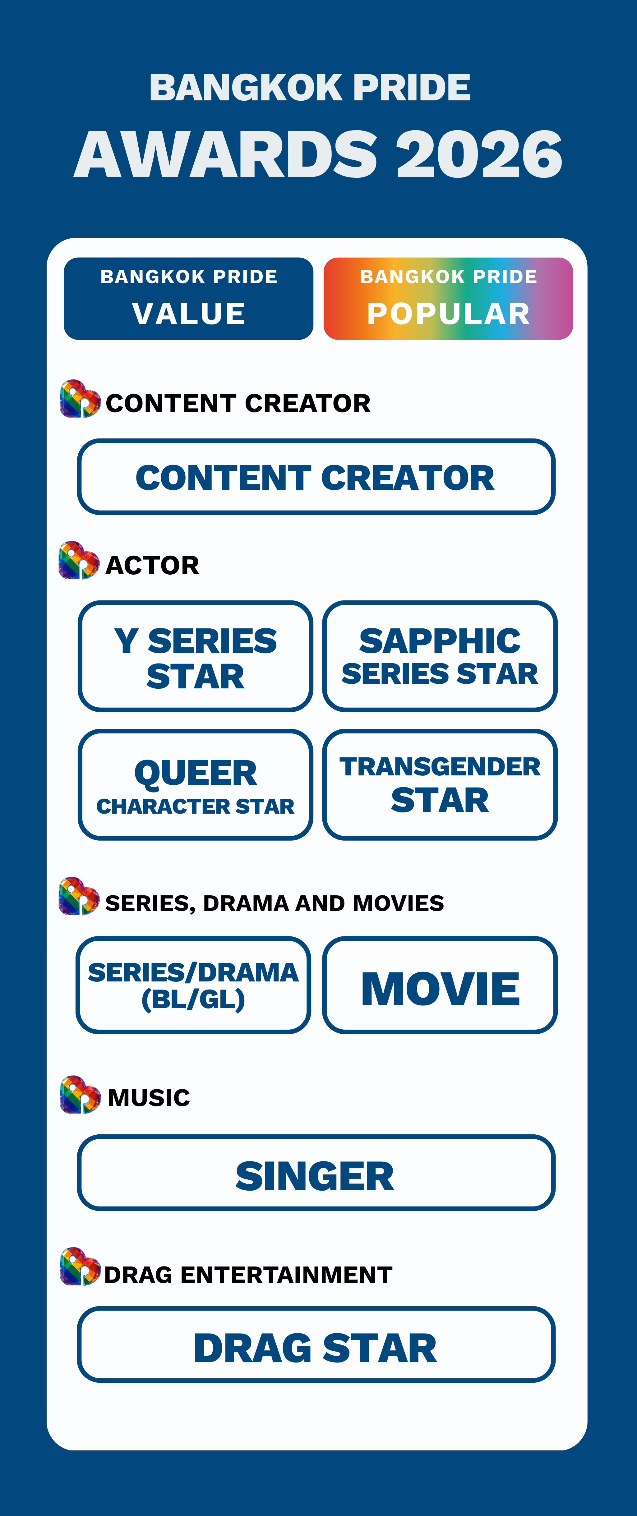 Bangkok Pride Awards 2026 returns for its second year, inviting everyone to recognize and value the individuals, organizations, and works that play a vital role in inspiring, pushing for understanding, and gradually transforming society to be more open for everyone.