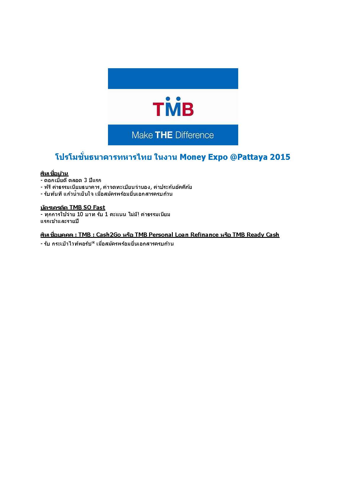 สินเชื่อบุคคล: TMB Cash2Go หรือ TMB Personal Loan Refinance หรือ TMB Ready Cash รับ กระเป๋าไวท์พอร์ช เมื่อสมัครพร้อมยื่นเอกสารครบถ้วน