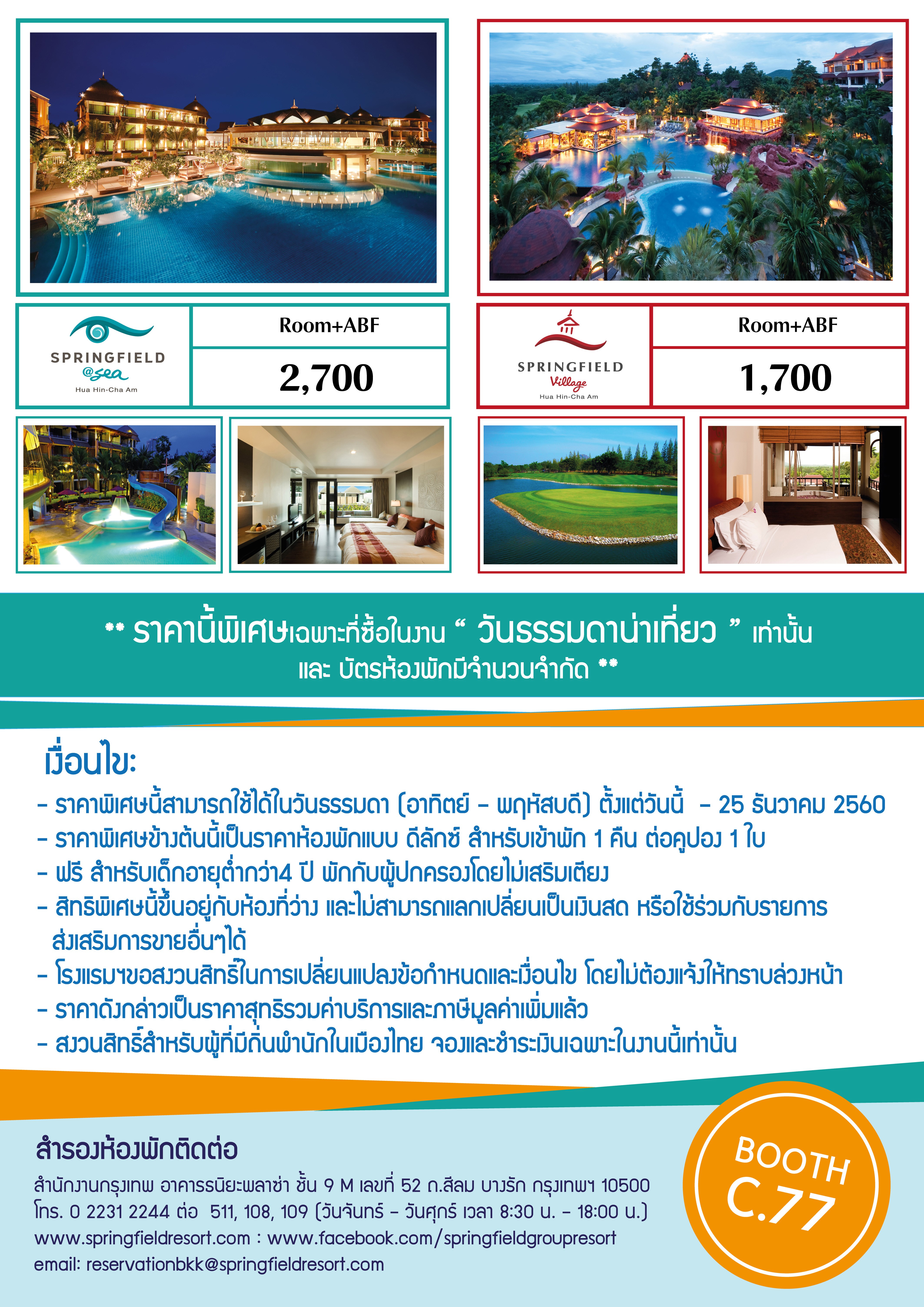 ห้องพักพร้อมอาหารเช้าในราคาสุดพิเศษ! เฉพาะที่ซื้อในงาน "วันธรรมดาน่าเที่ยว" เท่านั้น และบัตรห้องพักมีจำนวนจำกัด