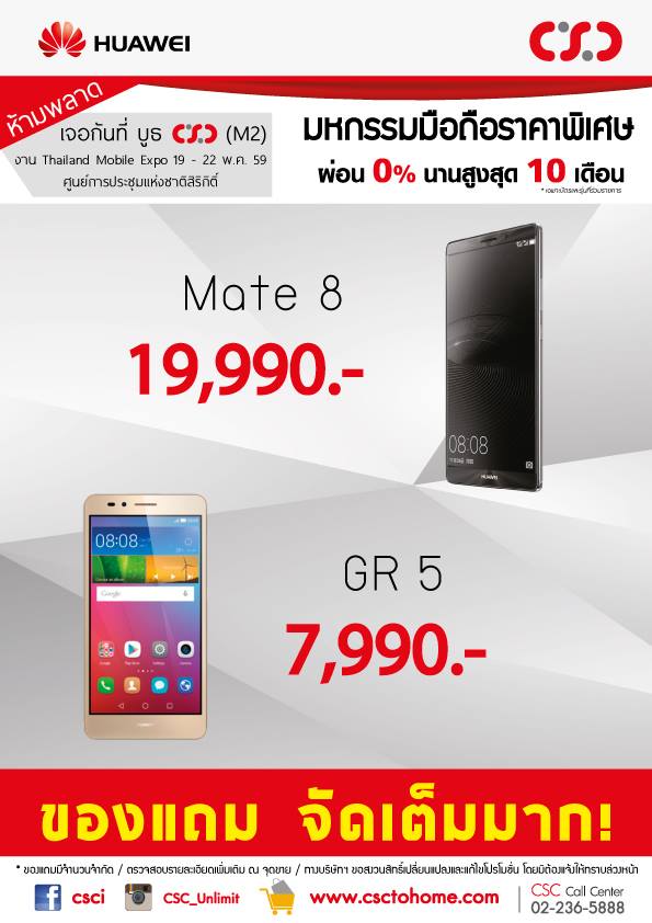 Mate 8 - 19,990 บาท GR5 - 7,990 บาท ผ่อน 0% นานสูงสุด 10 เดือน