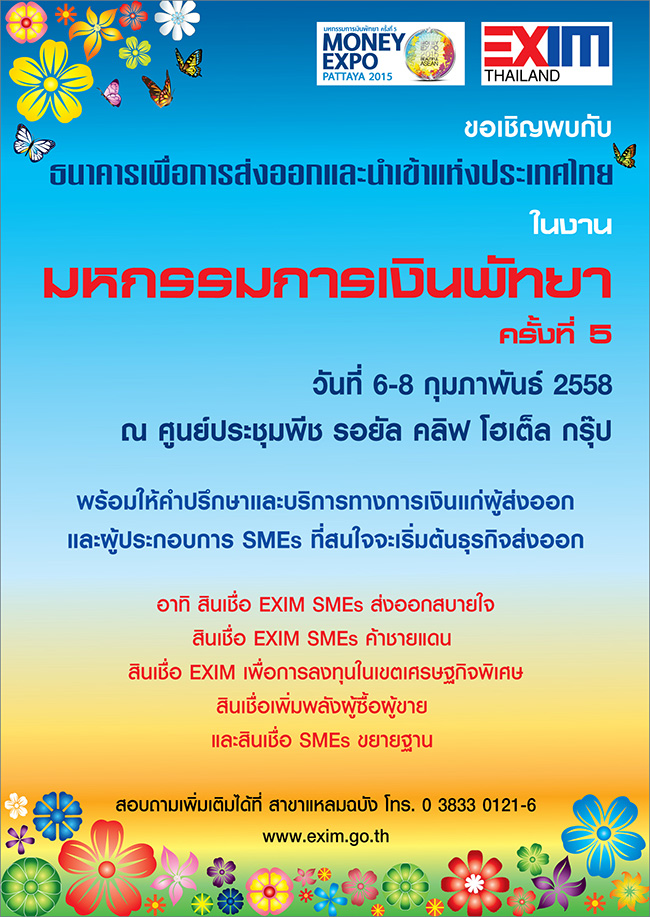 ธนาคารเพื่อการส่งออกและนำเข้าแห่งประเทศไทย มีวิสัยทัศน์คือ เป็นธนาคารที่สร้างโอกาสให้ผู้ประกอบการไทยเข้าสู่เวทีโลก โดยเฉพาะประชาคมเศรษฐกิจอาเซียน (ASEAN Economic Community: AEC)