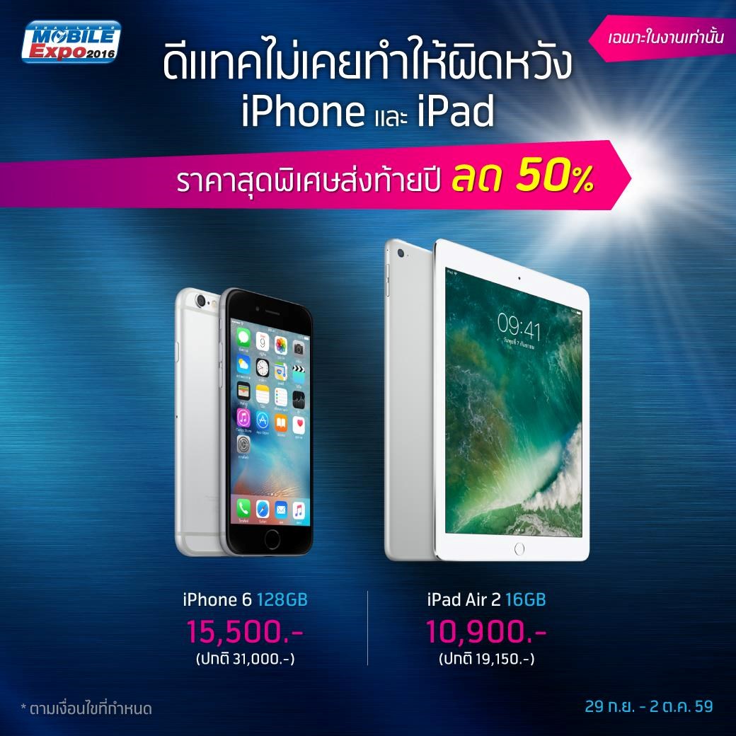 - iPhone 6 (128GB) - เพียง 15,500 บาท - iPad Air 2 (16GB) - เพียง 10,900 บาท