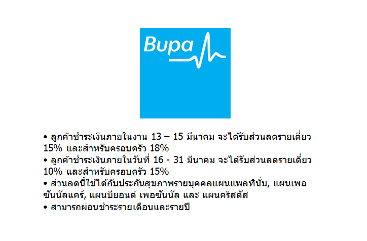 บูพา ประเทศไทย หรือชื่อเดิมที่รู้จัก คือ บูพา บลูครอส เป็นผู้นำด้านการให้บริการประกันสุขภาพที่เชี่ยวชาญของประเทศไทย บูพาให้ความคุ้มครองและคำแนะนำด้านประกันสุขภาพแก่ลูกค้าทั้งรายบุคคล พนักงานบริษัทและครอบครัวของพนักงานในบริษัทชั้นนำของประเทศไทยมาเป็นเวลามากกว่า 30 ปี
