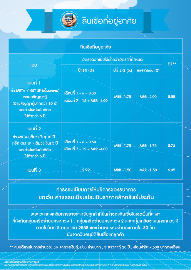 สินเชื่อที่อยู่อาศัย อัตราดอกเบี้ย 0% 6 เดือน