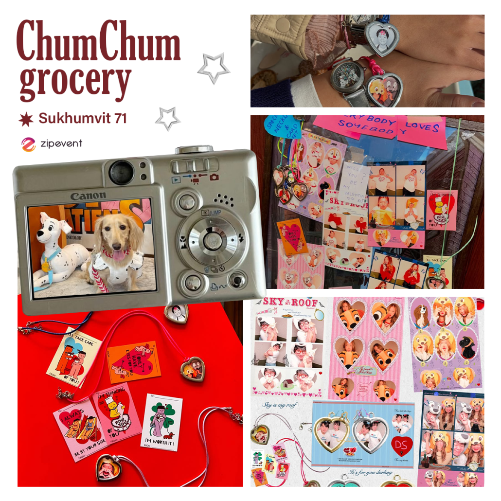 พอพูดถึง ‘ChumChum Grocery’ แน่นอนว่าสิ่งแรกที่ป้อปเข้ามาในหัวเลยก็คือความน่ารักกุ๊กกิ๊ก เพราะที่ร้านนี้น่ารักตั้งคาเฟ่ เมนูขนมและเครื่องดื่ม ไปจนถึงตู้โฟโต้บูธ! ถ้าใครได้แวะมาเที่ยวที่คาเฟ่ บอกเลยว่าต้องห้ามพลาดที่จะถ่ายรูปเช็คอินกับตู้โฟโต้บูธที่นี่เด็ดขาด เพราะทั้งแต่ละเฟรมคือน่ารักแบบสุดๆ เป็นธีมที่ให้ mood&tone สไตล์ดิสนีย์ แถมยังมีพร็อพน่ารักๆ ให้เลือกอีกเพียบ ทั้งตุ๊กตา หมวก และที่คาดผม รับรองเลยว่าชาว disney lover จะต้องตกหลุมรัก
