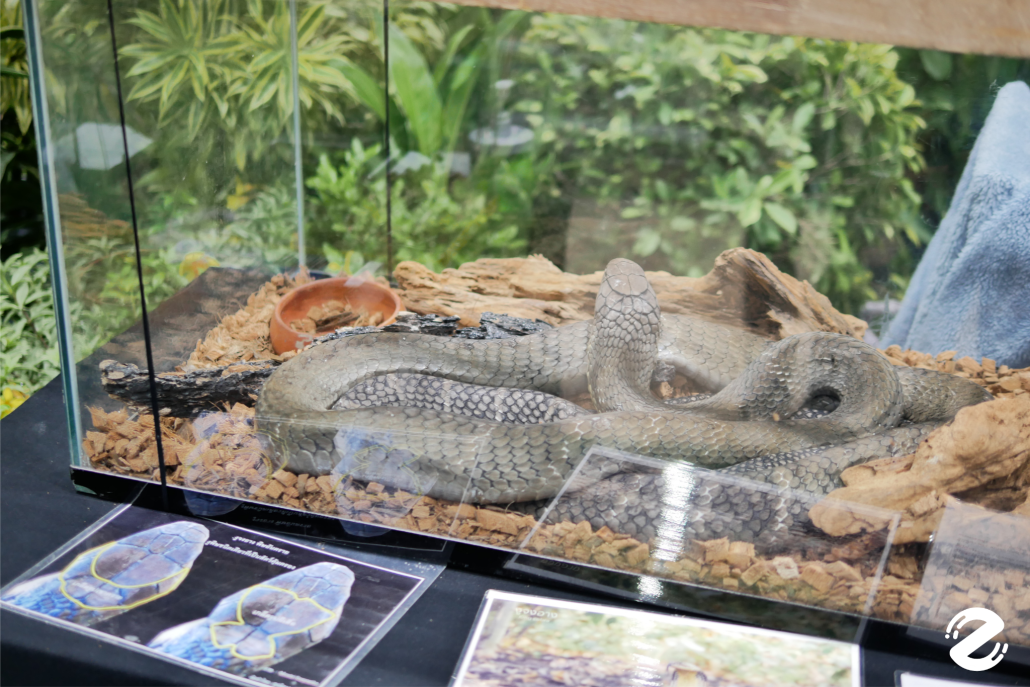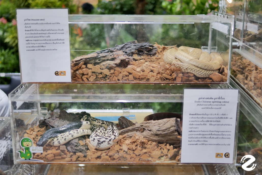 นอกจากโซนอาณาจักรงูเวอร์ชั่นน่ารักๆ แล้ว ภายในงานยังมีโซนงูพิษที่ออกมาโชว์ตัว ให้เราได้ทำความรู้จักและเรียนรู้อะไรใหม่ๆ กลับมาด้วย โดยน้องๆ จะอยู่ในกล้องอย่างมิดชิด พร้อมมีป้ายข้อมูลให้ความรู้เกี่ยวกับงูแต่ละชนิด โดยจะมีตั้งแต่งูเห่าไทย งูเห่าด่างพ่นพิษ งูเขียวหางไหม้ท้องเหลือง และสายพันธุ์อื่นๆ อีกมากมาย