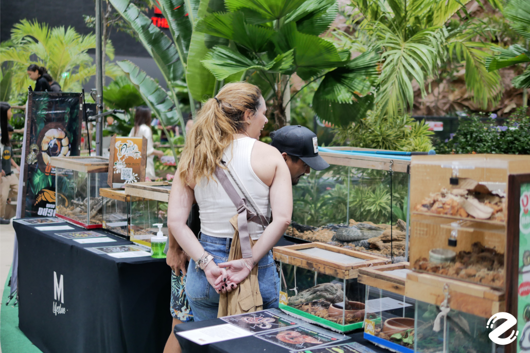 มาเริ่มกันที่โซนแรก! โซนสัตว์สุดพิศวง เชื่อว่าหลายๆ คนอาจจะกลัวเมื่อได้ยินชื่อสัตว์ประเภทนี้ แต่สำหรับ The Malll Lifestore Jungle Walk 2025 จะพาคุณไปเปิดโลกแบบใกล้ชิดกับสัตว์พิศวง ไม่ว่าจะเป็น เต่าน้ำ กิ้งก่า อิกัวน่าเคแมน จระเข้ มอนิเตอร์ซาวันนา จิ้งโจ้แคระ นกแก้ว ลิงต่างๆ และสัตว์ครึ่งบกครึ่งน้ำอื่นๆ อีกเพียบ! ซึ่งสัตว์บางชนิดอาจเป็นสัตว์ที่คุณไม่เคยเห็นหรือรู้จักมาก่อน อีกทั้งจะมีเจ้าหน้าที่คอยให้ความรู้และดูแลอย่างใกล้ชิด