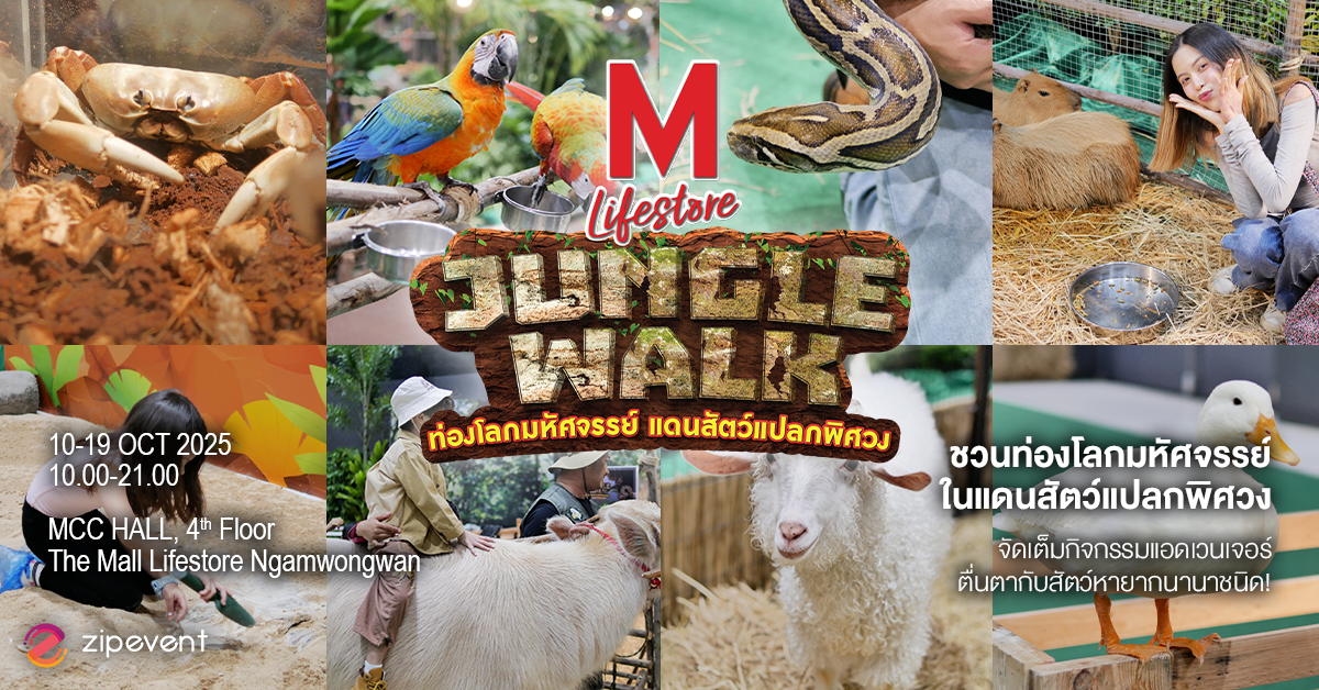 ซื้อบัตรได้แล้ววันนี้ ! ที่ https://www.zipeventapp.com/e/THE-MALL-LIFESTORE-JUNGLE-WALK-2025 - ติดตามรายละเอียดเพิ่มเติมได้ที่: The Mall Lifestore Ngamwongwan