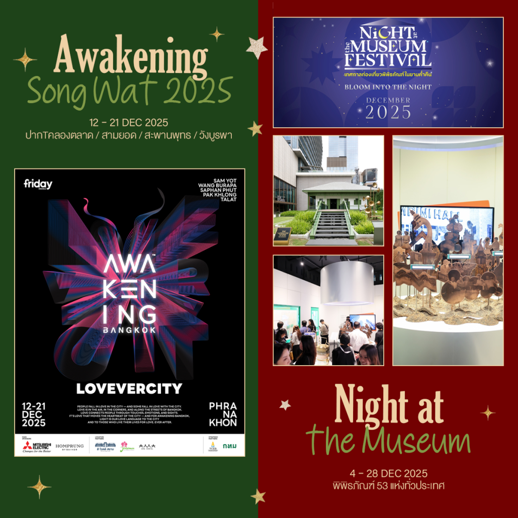 ปักหมุดเช็คอินส่งท้ายสิ้นปี! กับ ‘Night at the Museum Festival 2025’ อีเว้นท์ศิลปะ สุดพิเศษที่จะพาคุณเดินทางไปท่องโลกของพิพิธภัณฑ์ในยามค่ำคืน สัมผัสกับวัฒนธรรมไทยท่ามกลางแสงสีเสียงสุดอลังการ จัดเต็มตลอดเดือนธันวา พร้อมส่งต่อแนวคิด ‘Bloom into the Night: Night at the Museum, where culture comes’ ถ่ายทอดการเบ่งบานทางวัฒนธรรม ผ่านการนำเสนอความหลากหลายที่ซ่อนอยู่ในพิพิธภัณฑ์กว่า 53 แห่งทั่วประเทศ บอกเลยว่าเทศกาลนี้จะทำให้ค่ำคืนเดือนธันวาของทุกคนพิเศษยิ่งกว่าเดือนไหนๆ แน่นอน