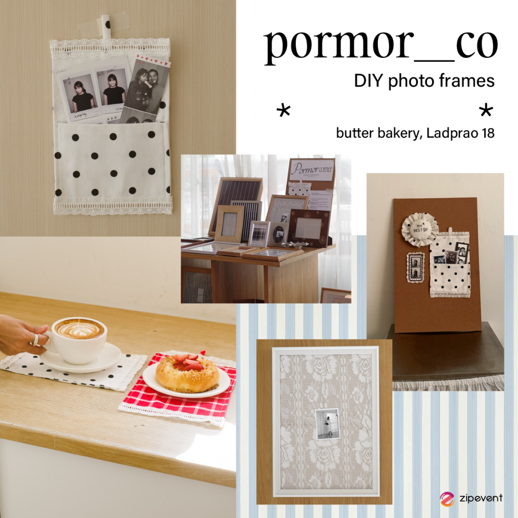 อีกหนึ่งเวิร์กช็อปที่ตอนนี้กำลังฮอตสุดๆ คงจะหนีไม่พ้น DIY photo frames ซึ่งในวันนี้เราก็ขอแวะมาแนะนำ ‘pormor__co’ กับเวิร์กช็อปจิ๋วๆ ที่ซ่อนตัวอยู่ใน butter bakery กัน! โดยภายในร้านจะมีตู้ถ่ายรูปโฟโต้บูธอยู่ ทุกคนสามารถแวะมาถ่ายรูปแล้วนำมาตกแต่งและดีไซน์เลือกกรอบรูปและผ้าได้เลย บอกเลยว่าเป็นอีกหนึ่งเวิร์กช็อปเล็กๆ ที่น่ารักและอบอุ่นมาก ที่สำคัญทุกอย่างที่ทุกคนได้เลือกมา DIY ยังเป็นการนำสิ่งที่ leftover มาเติมชีวิตใหม่ กลายเป็นกรอบรูปที่เก็บภาพความทรงจำและโมเม้นต์น่ารักๆ อีกด้วย