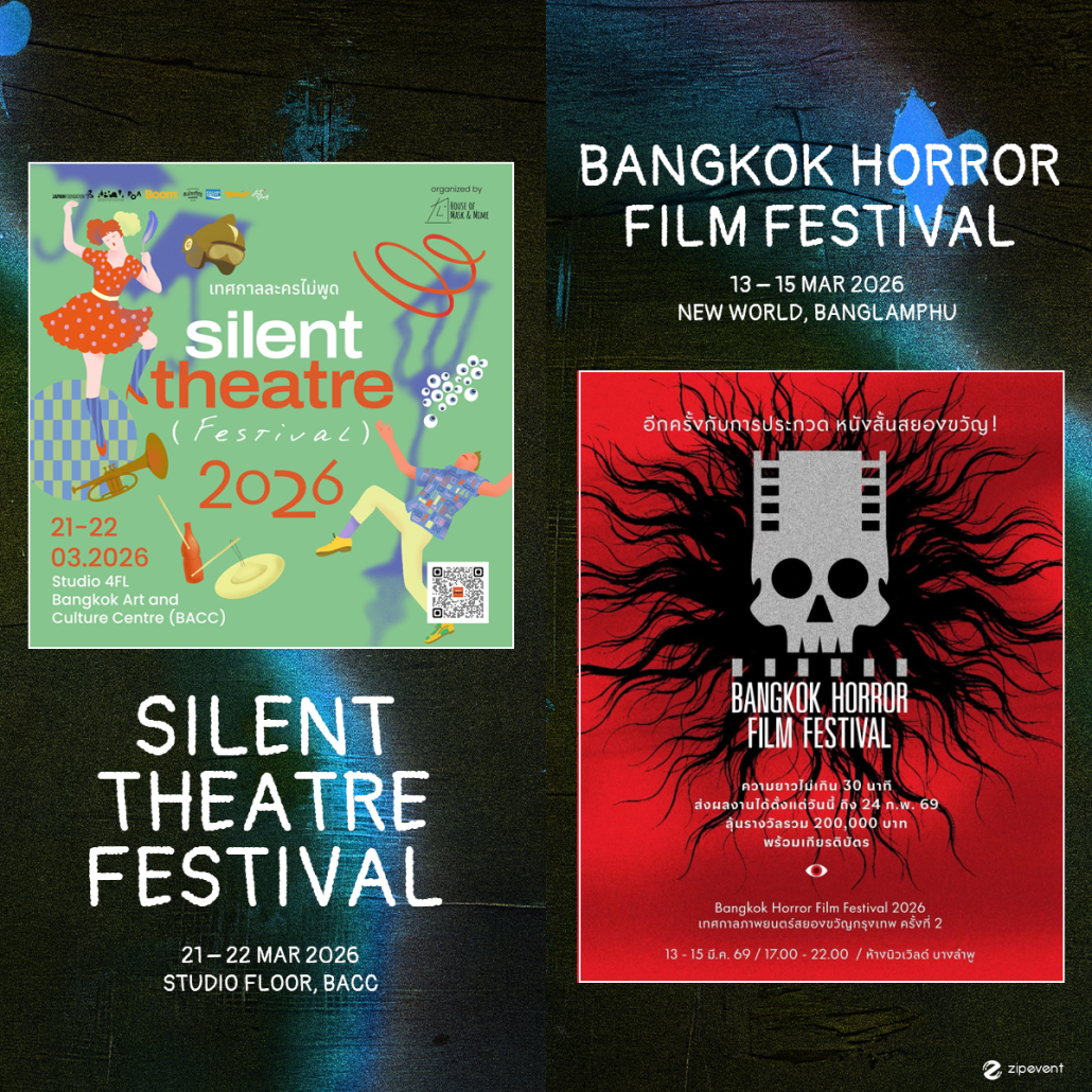 ชวนเปิดประสบการณ์ใหม่ด้วยกันที่ ‘Silent Theatre Festival 2026’ เทศกาลละครไม่พูดที่ในปีนี้ยกมัพการแสดงคุณภาพระดับโลกมาเสิร์ฟให้ชมกันแบบจุใจ! รวมศิลปินทั้ง Mime / Clown / Physical Theatre จาก 3 ประเทศ พร้อมพาทุกคนเดินทางไปสัมผัสประสบการณ์การแสดงไร้คำพูดที่เต็มไปด้วยความสนุก ความน่าประทับใจ และจินตนาการอันไร้ขีดจำกัด จัดแสดง 21-22 มีนาคม 2569 ณ Studio ชั้น 4 หอศิลปวัฒนธรรมแห่งกรุงเทพมหานคร (BACC)