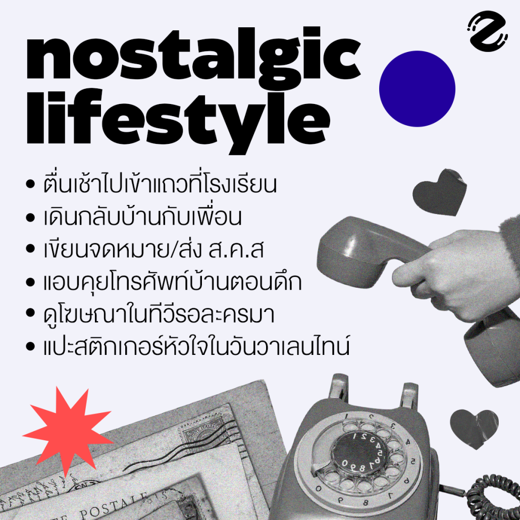 หรืออาจจะเป็นการใช้ชีวิตที่ความเรียบง่ายแต่กลับเต็มไปด้วยความสุข อย่างตอนที่ได้เดินกลับบ้านกับเพื่อน ตอนที่ได้เขียนจดหมาย ส่งการ์ด หรือส่ง ส.ค.ส ตอนได้แปะสติกเกอร์หัวใจในวันวาเลนไทน์ให้เพื่อน รุ่นพี่ รุ่นน้อง ตอนแอบคุยโทรศัพท์บ้านตอนดึกๆ แบบไม่ให้ใครรู้ อาจจะเป็นตอนที่ต้องดูโฆษณาในทีวีรอละครมา หรือเขียนเสื้อให้เพื่อนวันเรียนจบ พอได้มานั่งย้อนความทรงจำแบบนี้ มันชวนให้รู้สึก nostalgia แบบสุดๆ เพราะหัวใจเราตอนนี้รู้สึกได้เลยว่าช่วงเวลาที่ผ่านมาเหล่านั้นมีค่าและพิเศษมากแค่ไหนจริงๆ
