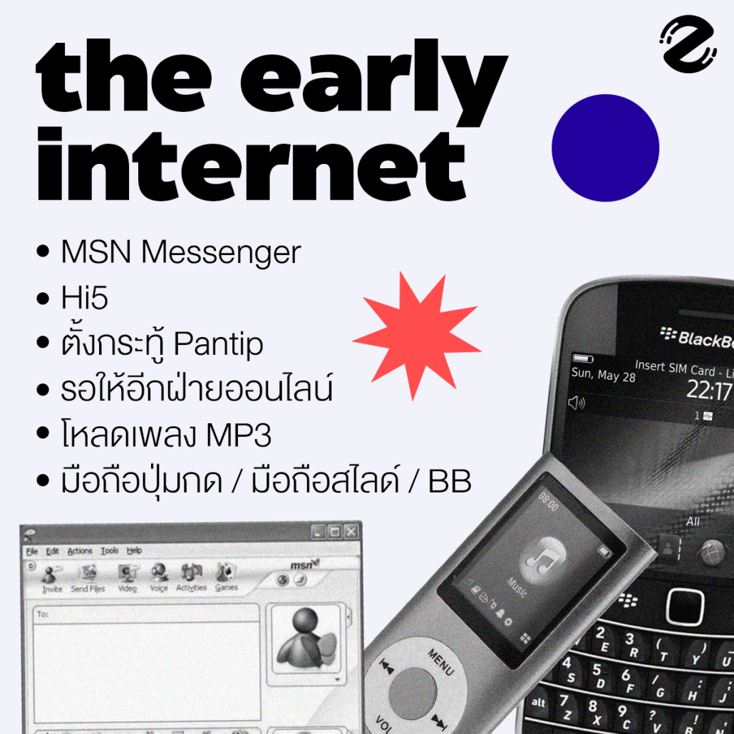 ในยุคดิจิทัลตอนนี้ บอกเลยว่าสมัยก่อนก็มีโลกออนไลน์กับเขาเหมือนกัน โลกออนไลน์ในวันวาน ที่ถึงแม้จะไม่ได้เร็วหรือสะดวกสบายเท่าทุกวันนี้ แต่กลับเป็นโลกออนไลน์ที่ทำให้รู้สึกทุกการรอคอยมีความหมายมากจริงๆ แน่นอนว่าในยุคนั้นที่พลาดไม่ได้เลยก็คงจะเป็น MSN Messenger ที่ต้องรอให้ออนถึงจะได้คุยกัน Hi5 Postjung หรือการตั้งกระทู้ Pantip เพื่อถามคำถามที่สงสัย นอกจากนั้นก็ยังมีการโหลดเพลง MP3 ลงทีละเพลงอย่างตั้งใจ รวมถึงมือถือปุ่มกด มือถือสไลด์ และ BB ที่ถ้าไม่มีก็ถือว่าตกเทรนด์สุดๆ
