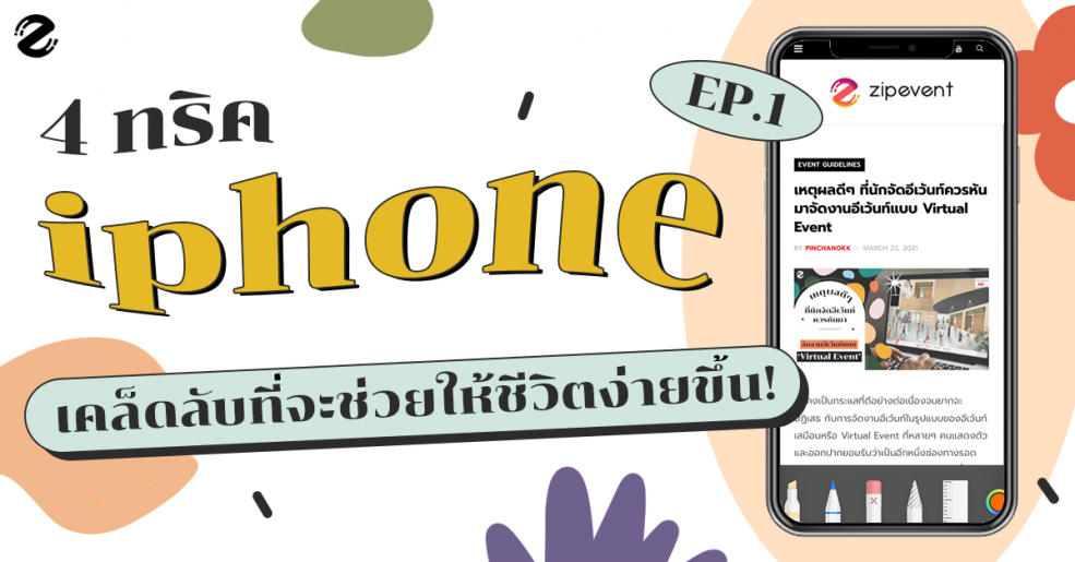 จริงๆ แล้วมี ทริค iPhone มากมายนับร้อยอย่างที่เราสามารถทำได้เพื่อความสะดวกและช่วยประหยัดเวลามากขึ้น เราเชื่อว่าเพื่อนๆ หลายคนน่าจะยังไม่รู้ว่าโทรศัพท์มือถือคู่ใจของเพื่อนๆ นั้นสามารถช่วยเหลือให้การใช้ชีวิตประจำวันนั้นง่ายขึ้นมาก วันนี้ Zipevent…