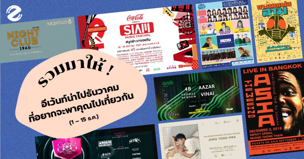 สวัสดีเดือนธันวาคมค่ะทุกคน เผลอแป็ปๆ ก็จะหมดปีอีกแล้วนะเนี่ย! แน่นอนว่าวันนี้ Zipevent ก็ไม่ลืมที่จะมีอีเว้นท์น่าไปมาแนะนำสำหรับคนที่ขี้เบื่อ หรืออยากจะออกจากบ้านไปค้นหาแรงบันดาลใจ ว่าแล้วไปดูกันเลยว่ามีอีเว้นท์ไหนกันบ้าง ! Grab Presents: On The Way Festival 1 ธันวาคม 2561 / 17.00…