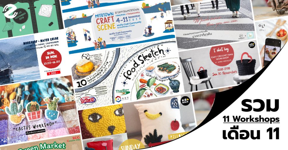 ต้องเชื่อเลยว่ายุคนี้เป็นยุคของงานอดิเรกจริงๆ ถ้ามีโอกาสว่างๆ ไม่ว่าจะเพศไหน อายุเท่าไหร่ ล้วนอยากหากิจกรรมทำเพื่อความสนุก พอทำไปทำมา ดันได้ความรู้นั้นไปประยุกต์ในแบบของตัวเองซะงั้น บางทีสามารถสร้างสินค้าจนไปสร้างรายได้ได้เลย หรือนำไปสอนคนอื่นได้อีก ไม่แปลกใจเลยทำไมถึงมีแต่คนชอบไปเวิร์คช็อป วันนี้ วันดี ซิปเลยรวบรวม 11 workshop ของเดือน 11 มาให้ทุกคนนะคะ เชื่อว่าใครที่ได้ไปลองเรียนรับลองติดใจไปแล้วอยากกลับมาอีกแน่นอนค่าา ไม่รอช้าแล้ว….ไปดูกันดีกว่าว่ามีเวิร์คช็อป แบบไหนบ้าง?