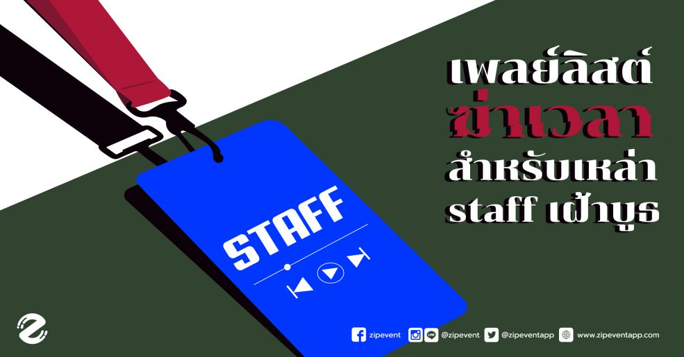 วันนี้ Zipevent รวบรวมเพลย์ลิสต์เพลงฆ่าเวลาในช่วงนั่งเฝ้าบูธมาฝาก แต่อย่าฟังนานจนเกินงามไปนะ เดี๋ยวจะดูไม่ดีในสายตาหัวหน้าเอาได้