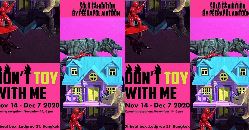 ในช่วงที่เรายังเป็นเด็กกันอยู่ เชื่อว่าหลายๆ คนน่าจะมีการละเล่นมากมาย ทั้งการสมมติเป็นบทบาทต่างๆ อย่าง พ่อแม่ลูก การเล่นขายของ หรือไม่ก็เล่นของเล่นที่เราจินตนาการให้เป็นเรื่องราวต่างๆ เหมือนกับนิทรรศการเดี่ยว “Don’t Toy With me” ของพีรพล อินทร์ตุ้ม ที่จะนำเราไปสู่การละเล่นรบรากันในวัยเยาว์ของเขา และการปรากฎของตัวละครจากเรื่องราวต่างๆ กัน เขาได้สร้างภาพของการชุมนุมประสาทระหว่าง วีรชน…