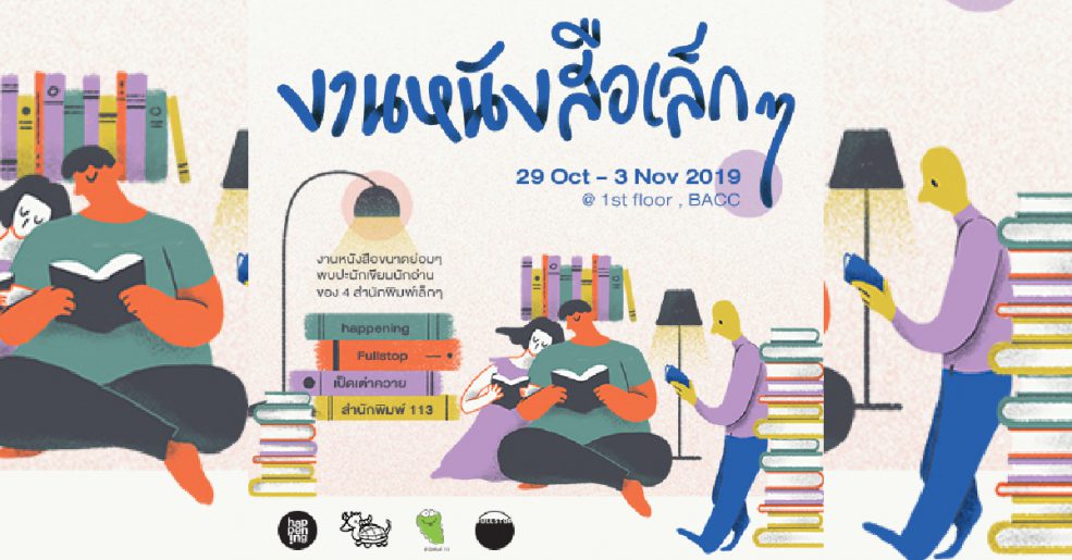 ไม่ได้เป็นงานหนังสือที่ยิ่งใหญ่อะไรมากมาย เป็นเพียงงานหนังสือเล็กๆ ที่มีการออกบูทขายหนังสือของสำนักพิมพ์เล็กๆ 4 แห่งน่ารักๆ ได้แก่ happening, Fullstop, เป็ดเต่าควาย และสำนักพิมพ์ 113 ร่วมกันจัดงานหนังสือเล็กๆ แต่เป็นจุดกระเพื่อมที่ยิ่งใหญ่ ที่จะทำให้เราชาวนักอ่าน นักศึกษา และชาวนักเขียนพบเจอกัน เพื่อเน้นย้ำว่า หนังสือจะไม่ตายไปตามเทคโนโลยีง่ายๆ เพราะ ยังมีพวกเราอยู่…