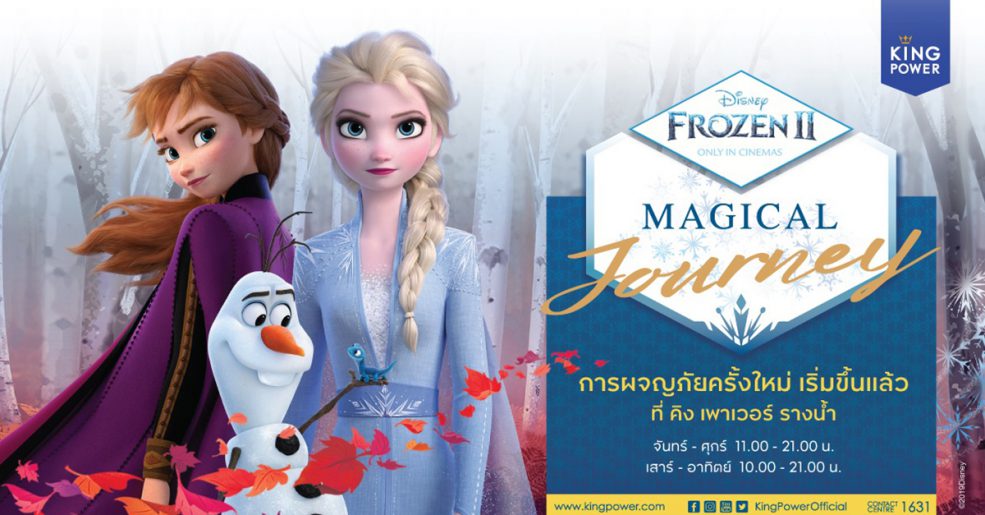 คิง เพาเวอร์ และดิสนีย์ประเทศไทย ร่วมมือกันจัดอีเว้นท์สุดพิเศษ ” King Power and Disney’s Frozen 2 Magical Journey ” โดยเนรมิตพื้นที่โดยรอบของ คิง เพาเวอร์ รางน้ำ ให้อลังการเหมือนฉากในภาพยนตร์แอนิเมชั่นเรื่อง Frozen…
