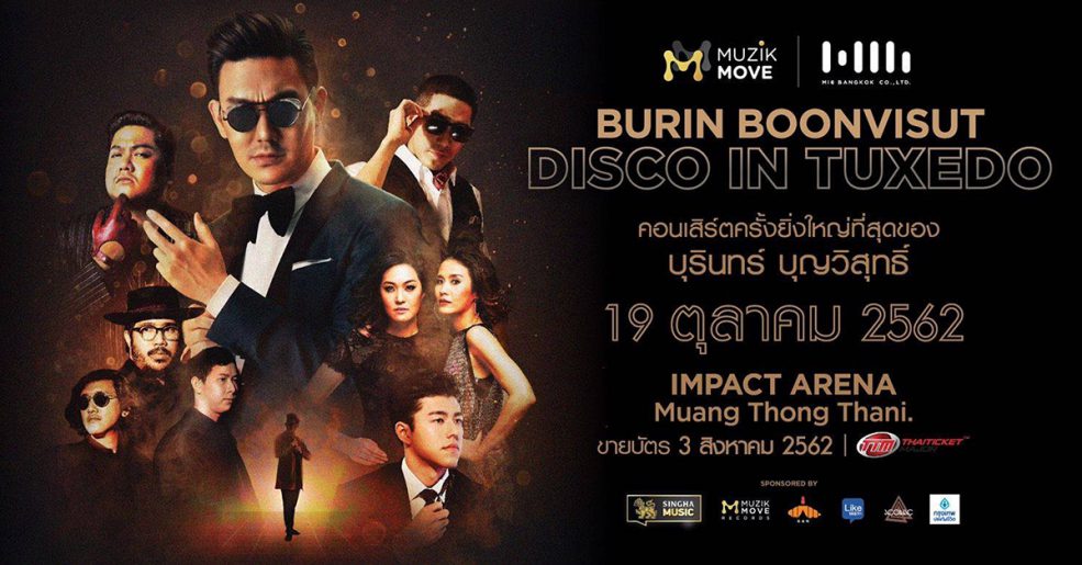 กลับมาอีกครั้งกับคอนเสิร์ตเดี่ยวครั้งยิ่งใหญ่ที่สุดในรอบ 18 ปีของ BURIN BOONVISUT DISCO IN TUXEDO (บุรินทร์ ดิสโก้ อิน ทักซิโด้) เจ้าพ่อเพลงดิสโก้เมืองไทย “บุรินทร์ บุญวิสุทธิ์” ศิลปินในค่ายมิวซิกมูฟ เรคคอร์ดส ในเครือบริษัทมิวซิกมูฟจำกัด ซึ่งครั้งนี้มาในมาดสายลับใส่สูทสุดเนี๊ยบกับแขกรับเชิญสุดเอ็กซ์คลูซีฟมาฟาดฟันด้วยแสงสีเสียง ที่รับรองความอลังการบันเทิงจาก ป๋าเต็ด – ยุทธนา บุญอ้อม พร้อมร่วมมือกันทำภารกิจนี้ให้สำเร็จในรอบเดียววันที่ 19 ตุลาคม 2562 อิมแพ็คอารีน่าเมืองทองธานี