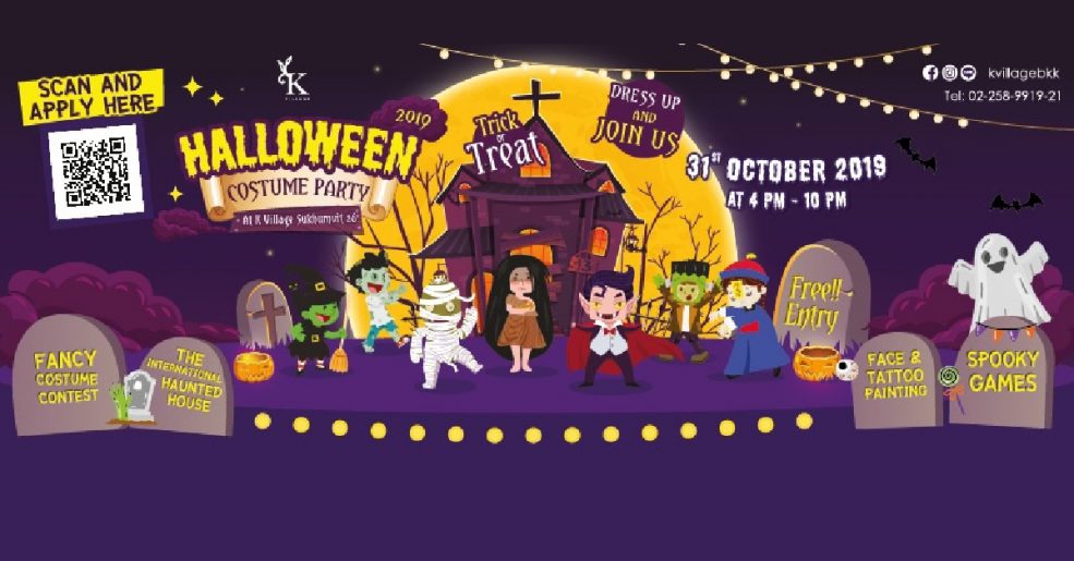 และอีกครั้งกับการกลับมาของ K Village Halloween Costume Party ที่จะพาครอบครัวเเละหนูๆ ทุกคนไปสนุกกับเทศกาล Halloween ปาร์ตี้เขย่าขวัญสุดหลอน ที่จะถึงนี้ในวันที่ 31 ตุลาคม 2562 เวลา 16.00 – 22.00 น. ณ ลาน K Square ศูนย์การค้าฯ K Village สุขุมวิท 26
