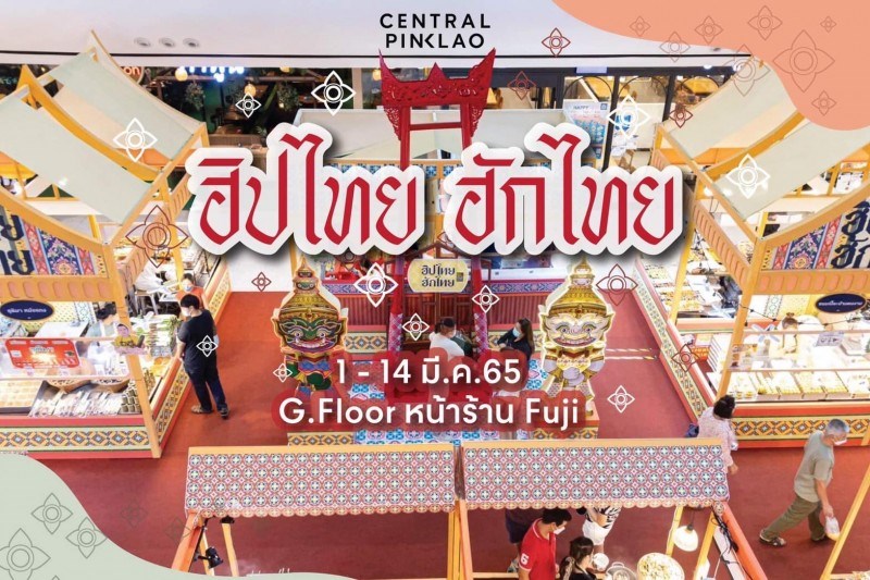 ฮิปไทย ฮักไทย วันที่ 1 - 14 มีนาคม 2565 ณ เซ็นทรัล ปิ่นเกล้า ฮิปไทย ฮักไทย มีบูธร้านค้าต่าง ๆ มากถึง 40 ร้าน ช้อปเพลิน ๆ ในบรรยากาศความเป็นไทย มีทุกอย่างที่คุณต้องการไม่ว่าจะเป็นอาหารคาว ขนมหวาน ผลไม้ตามฤดู รสชาติอร่อยคุณภาพดี ๆ ทั้งนั้นเลย ตั้งแต่วันนี้ - 14 มี.ค. 65 ณ โซนชั้น G หน้า fuji