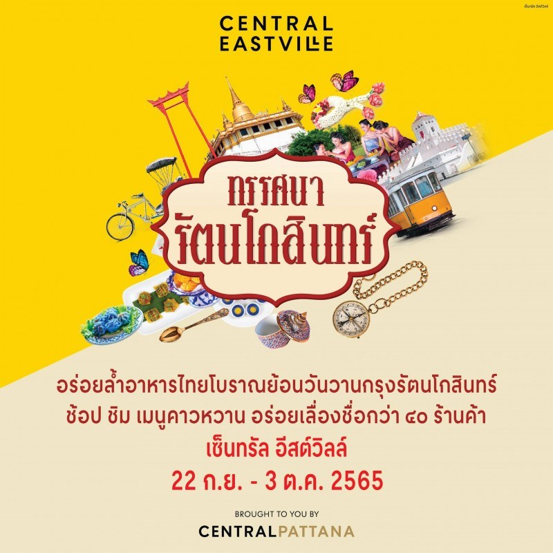 วันที่ 22 กันยายน - 3 ตุลาคม 2565 ณ เซ็นทรัล อีสต์วิลล์ ทรรศนา รัตนโกสินทร์ ชวนคุณมาดื่มด่ำไปกับบรรยากาศย้อนยุค ที่รวมของคาวหวานสูตรโบราณหาทานยาก เลือกอิ่มอร่อยได้มากกว่า 40 ร้านดังในงานเดียว!