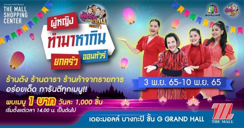 ยกขบวนความอร่อยเด็ด ออนทัวร์ มาเสิร์ฟชาว เดอะมอลล์บางกะปิ แล้วจ้า ในงาน "ผู้หญิงทำมาหากิน ยกครัว ออนทัวร์" มหกรรมอาหารแห่งปี พบกับคาราวานเมนูอาหาร ร้านเด็ด เจ้าดัง! ร้านค้าจากรายการกว่า 1,000 เมนู!!! นำทีมโดย พี่หนูแหม่ม, สุนารี ราชสีมา, ฮาย อาภาพร และตั๊ก ศิริพร พร้อมบูธดารา นักแสดงจากทั่วไทย อร่อยเด็ด การันตีทุกเมน! อัดแน่น! ไปกับกิจกรรมร่วมสนุกอีกเพียบ!