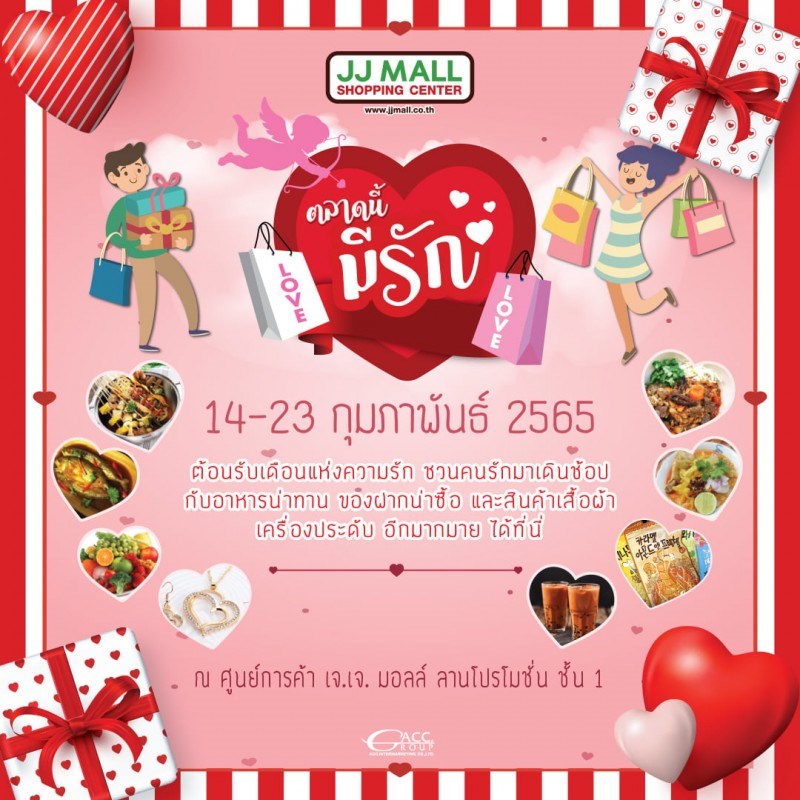 ตลาดนี้มีรัก ต้อนรับวันวาเลนไทน์ ชวนคนรักมาเดินชอปกับอาหารน่าทาน ของฝากน่าซื้อ และสินค้าเสื้อผ้า เครื่องประดับ อีกมากมายที่ JJMall วันที่ 14 - 23 กุมภาพันธ์ 2565 ณ ลานโปรโมชั่น ชั้น 1 ศูนย์การค้าเจเจมอลล์