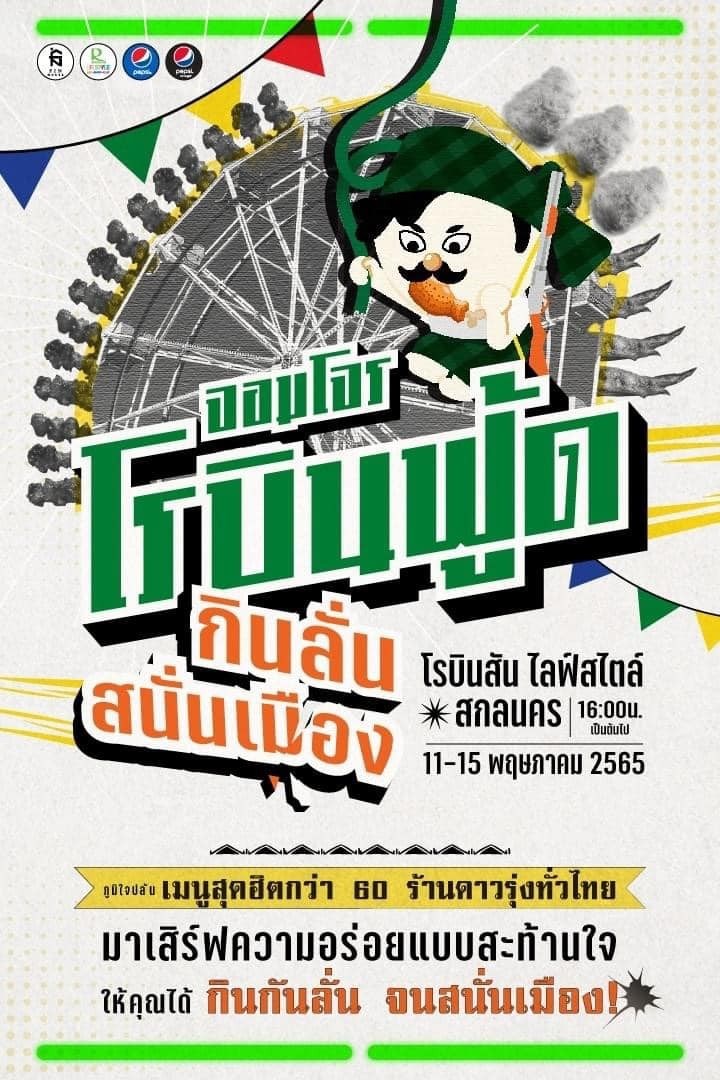 สกลนครพร้อมระเบิดความฟิน! ไปกับ เทศกาลอาหารสุดฟิน 'จอมโจร โรบินฟู้ด กินลั่น สนั่นเมือง' ที่ยกกองทัพความอร่อยกว่า 60 ร้านดังทั่วประเทศมาเสิร์ฟ 100 เมนูจัดว่าเด็ดให้คุณได้กินลั่น สนั่นเมือง เริ่ม 11-15 พ.ค. 65 เวลา 16.00 น.เป็นต้นไป ณ โรบินสัน ไลฟ์สไตล์ สกลนคร