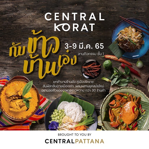 วันที่ 3 - 9 มีนาคม 2565 ณ เซ็นทรัล โคราช ยกตำนานร้านอร่อยคู่เมืองโคราช ไว้ในงาน "กับข้าว บ้านเอ๋ง" สัมผัสกลิ่นอายเมืองเก่า ผสมผสานยุคสมัยใหม่ อย่างลงตัวของอาหารกว่า 30 ร้านค้า เพลินเพลิดไปกับศิลปวัฒนธรรมอีสาน ที่พร้อมเสิร์ฟความสุขให้ทุกท่าน อิ่มอร่อยได้ตั้งแต่วันที่ 3 - 9 มี.ค. 65 ลานกิจกรรมชั้น 1 เซ็นทรัล โคราช