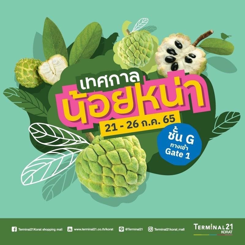 สดกว่านี้ไม่มีอีกแล้ว เอาใจแฟนพันธุ์แท้น้อยหน่า ที่งาน "เทศกาลน้อยหน่า" ส่งตรงจากสวนมาให้เลือกช้อปกันหลากหลายสายพันธุ์ รวมถึงผลไม้อีกนานาชนิด ช่วงเวลานาทีทอง น้อยหน่าราคาสุดพิเศษ กิโลละ 1 บาท (จำนวนจำกัด/เฉพาะวันเสาร์-อาทิตย์) #แฟนพันธุ์แท้น้อยหน่าไม่ควรพลาด! วันที่ 21 - 26 ก.ค. 65 ณ บริเวณชั้น G ทางเข้าGate1 เทอร์มินอล21 โคราช