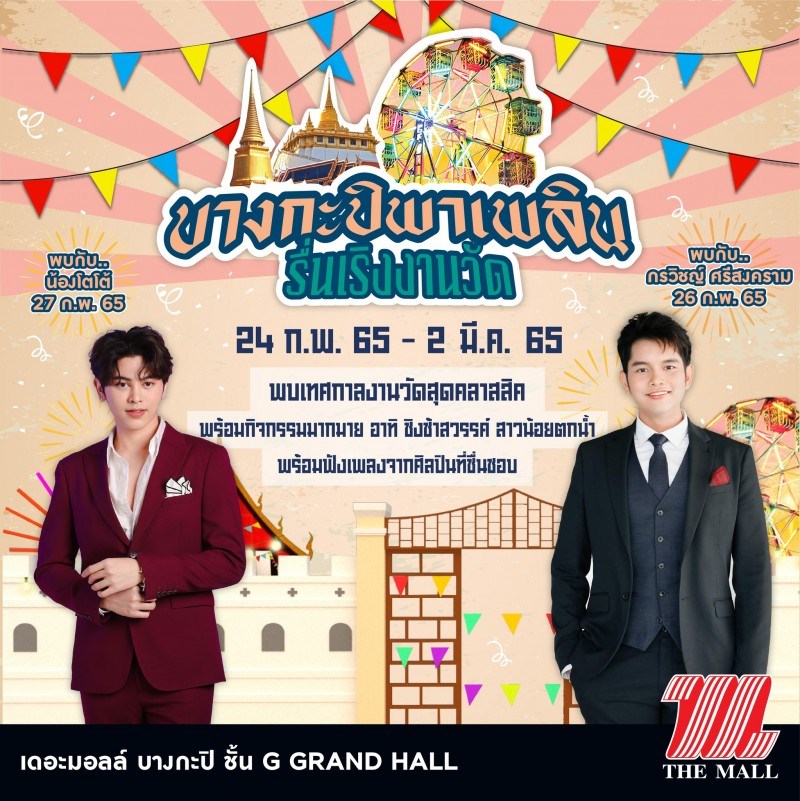 เดอะมอลล์ บางกะปิ ชวนมาสนุกสุขสันต์ ไม่มีคำว่าแผ่ว ในงาน "บางกะปิพาเพลิน รื่นเริงงานวัด" วันที่ 24 กุมภาพันธ์ - 2 มีนาคม 2565 ณ GRAND HALL ชั้น G เดอะมอลล์ บางกะปิ พบกับสินค้าแฟชั่น เมนูอาหารอร่อย ทั้งขนม ของหวานในบรรยากาศย้อนยุคสุดคลาสสิก เพลินเพลินกับเสียงเพลงจากศิลปินที่ชื่นชอบ