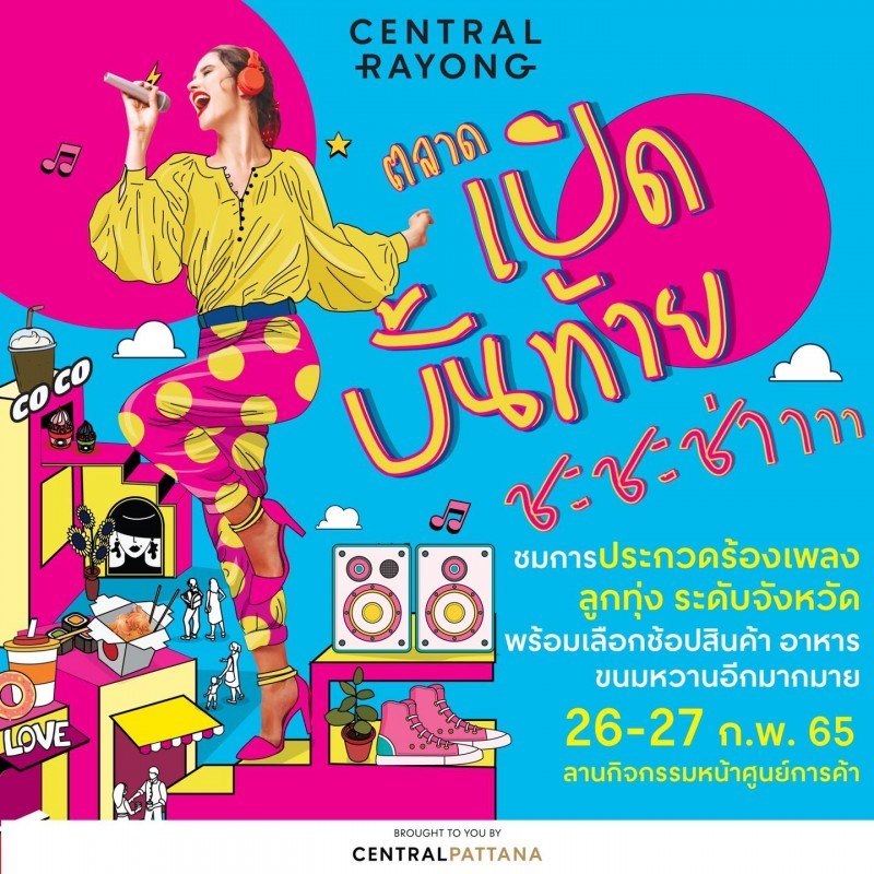 วันที่ 26 - 27 กุมภาพันธ์ 2565 ณ ศูนย์การค้าเซ็นทรัล ระยอง เตรียมพบกับตลาดเปิดบั้นท้าย ชะชะช่า ตลาดที่รวมคนและสินค้ามีสไตล์ไว้มากที่สุด @หน้าลานศูนย์การค้า เซ็นทรัลระยอง ส่งท้ายปลายเดือน วันเสาร์อาทิตย์ที่ 26 - 27 นี้ พบกันแน่ กับตลาดเปิดบั้นท้าย ชะชะช่าาา ที่กลับมาครั้งนี้ในตรีม ลูกทุ่งมีสไตล์ ภายในงานจัดเต็มสินค้ามีสไตล์และของกินอร่อย ๆ อาทิ เสื้อผ้า มือ 1 มือ 2 กิ๊ฟช็อปน่ารัก ๆ ของ Handmade อาหารคาวหวาน ไฮไลท์พิเศษสำหรับงานนี้ ชมการประกวดร้องเพลงลูกทุ่ง สงครามไมค์ระยอง คัดเลือกตัวแทนจังหวัด ไปแข่งระดับประเทศ วันที่ 26 ก.พ. รอบคัดเลือก 30 คน วันที่ 27 ก.พ. รอบตัดสิน ชมการประกวดเวลา 17.00 น. เป็นต้นไป ชวนเดอะเเก๊งค์มานั่งฟังเพลงเพราะ ๆ เดินช้อปสินค้าเก๋ ๆ ในบรรยากาศสุดชิล ณ ลานกิจกรรมหน้าศูนย์การค้า เซ็นทรัลระยอง