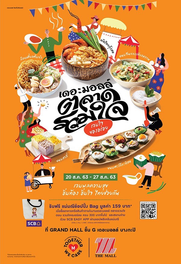 เดอะมอลล์ ตลาดรวมใจ ตอน รวมใจของอร่อย วันที่ 20 - 27 สิงหาคม 2563 ณ เดอะมอลล์ บางกะปิ เดอะมอลล์ ช้อปปิ้งเซ็นเตอร์ ร่วมกับ ธนาคารไทยพาณิชย์ จำกัด (มหาชน) เอาใจชาวบางกะปิ และพื้นที่ใกล้เคียง จัดงาน เดอะมอลล์ ตลาดรวมใจ ตอน รวมใจของอร่อย รวมพลความสุข อิ่มท้องอิ่มใจ ไทยช่วยกัน ยกขบวนความอร่อยกับที่สุดเมนูเด็ดทั้งคาว หวาน จากหลากหลายร้านดัง ที่ต้องซื้อกลับบ้านกว่า 70 ร้านค้า อร่อย สะอาดปลอดภัย ใส่ใดูแลคุณในรูปแบบใหม่ New Normal งานจัดขึ้นระหว่างวันที่ 20 - 27 สิงหาคม 2563 ที่ แกรนด์ ฮอลล์ ชั้น จี เดอะมอลล์ บางกะปิ รวมพลพ่อค้าแม่ค้า ร้านใหม่ชื่อดัง และร้านในตำนานคู่ใจชาวเดอะมอลล์ กว่า 70 ร้านค้า พร้อมเสิร์ฟความอร่อย เมนูยอดฮิตที่คิดถึง อร่อยถูกใจจนต้องซื้อกลับบ้าน อาทิ ใจดี Shrimp กุ้งเน้นๆ เต็มๆ คำ โดยกุ้งสดๆ จากฟาร์มของทางร้านเอง เมนูเด็ดซิกเนเจอร์ กุ้งผัดซอสมะขามมันกุ้ง กุ้งผัดสะตอ Oh! My Gyo เกี๊ยวยักษ์คำโตๆ ไส้แน่นๆ กินกับน้ำจิ้มรสเด็ด หมูทอดคุณนาย เมนูเด็ดหมูทอดกะปิ ใช้กะปิแท้คลองโคลน หมักและทอดสูตรพิเศษ เสือหมก by เขียวไข่กา ห่อหมกหน้าเนื้อย่าง หอมกลิ่นเครื่องเทศสมุนไพรไทย พร้อมทีเด็ดน้ำจิ้มแจ่วน้ำปลาสูตรเฉพาะของเสือหมก กุ๊ยช่ายทิชชู่ กุ๊ยช่ายแผ่นบาง กรอบนอก นุ่มใน ที่ได้ชิมแล้วจะติดใจ จนต้องกลับมาซื้อซ้ำ สรินทร์ทิพย์ ขนมเบื้องไทยตลาดพลู อร่อยมายาวนานกว่า 110 ปี สืบต่อมาถึง 4 รุ่น ขนมตะโก้คุณยายทองคำ ตะโก้กะทิสดแห่งตลาดน้ำพันท้ายนรสิงห์ ตำนานความอร่อยกับตะโก้ 16 ไส้ ที่เป็นเอกลักษณ์เฉพาะของร้าน และเมนูอร่อยจากร้านดังอีกมากมาย พิเศษ! รับฟรี แม่มณีช้อปปิ้ง Bag มูลค่า 159 บาท* เมื่อซื้ออาหารหรือสินค้าภายในมาน ครบ 300 บาทขึ้นไป และสแกนจ่ายด้วย SCB EASY APP ผ่านแอปพลิเคชันแม่มณี *โปรดตรวจสอบเงื่อนไขเพิ่มเติม ณ ขาย