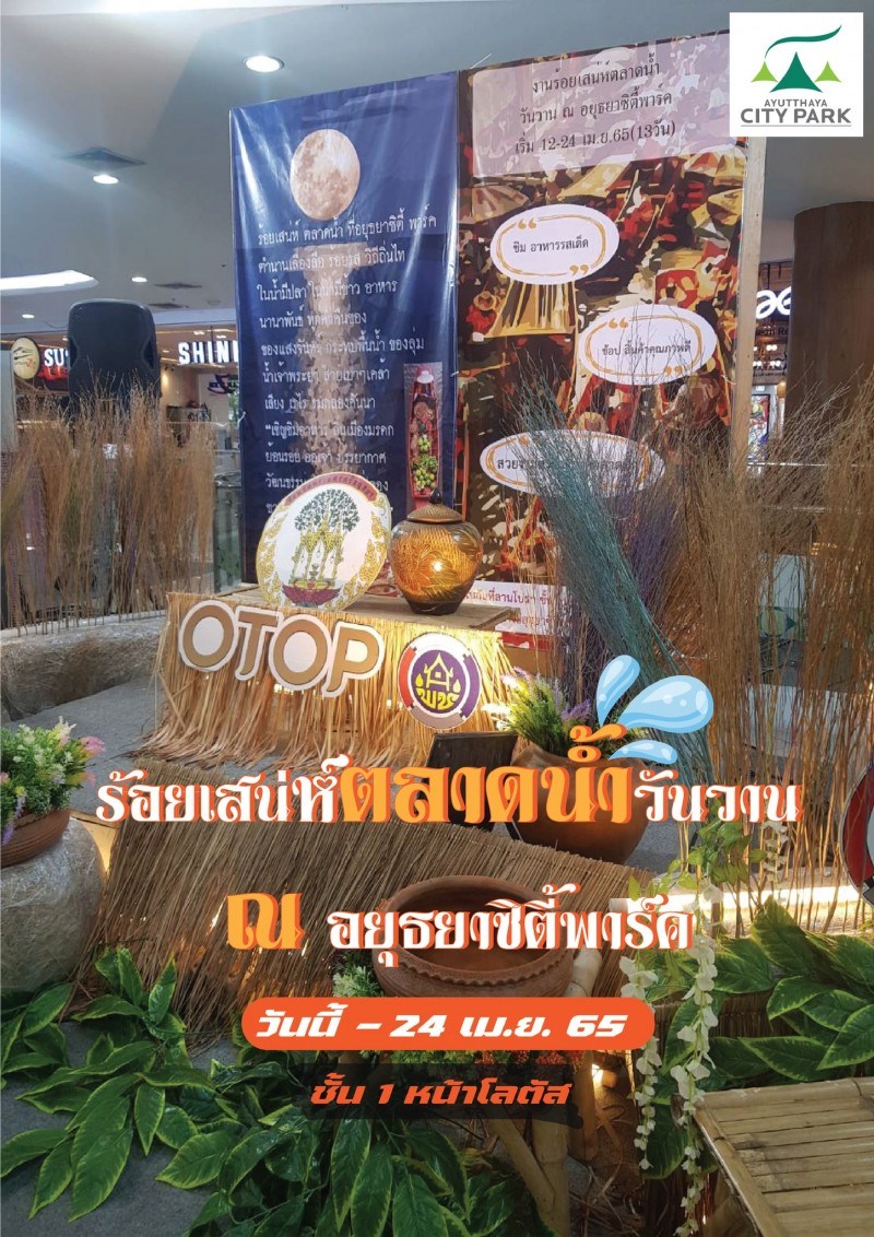 ร้อยเสน่ห์ตลาดน้ำ วันวาน วันที่ 21 - 24 เมษายน 2565 ณ ศูนย์การค้าอยุธยาซิตี้พาร์ค ชวนเดินช้อป บรรยากาศย้อนวันวาน เปิดตำนานอาหารอร่อย ทั้งขนมโบราณ อาหารคาวหวาน เสื้อผ้า และของตกแต่งบ้าน ในงานร้อยเสน่ห์ตลาดน้ำ วันวาน ณ อยุธยาซิตี้พาร์ค ตั้งแต่วันนี้ - 24 เม.ย. 65 ณ ชั้น 1 อยุธยาซิตี้พาร์ค