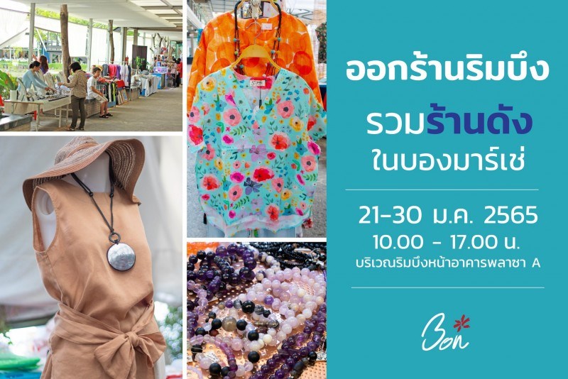 ‘งานออกร้านริมบึง’ ประจำปี 2565ณ บองมาร์เช่ มาร์เก็ตพาร์ค บริเวณริมบึงหน้าอาคารพลาซา Aกลับมาอีกครั้งกับงานออกร้านริมบึงที่หลายคนรอคอย! พบกันสินค้าหลากหลาย อย่างเครื่องประดับ เสื้อผ้า เรียกได้ว่าซื้อ ไปใส่สวย ๆ รับต้นปีกันไปเลยจ้า รับรองฟินสุด ๆ คุณภาพดี ราคาน่ารักแน่นอน แวะมาเดินช้อปกันเพลินๆ