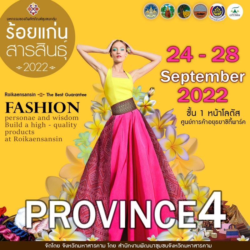 มหกรรมของดีร้อยแก่นสารสินธุ์ 2022 วันที่ 24 - 28 กันยายน 2565 ณ อยุธยาซิตี้พาร์ค ชวน ช้อป ผ้าไทย พบกับ "มหกรรมของดีร้อยแก่นสารสินธุ์ 2022" ชวนช้อป สินค้าจากผู้ประกอบการ Biz Club/ OTOP/SMEs/ สินค้าเกษตรแปรรูป ผลิตภัณฑ์อุตสาหกรรมจากกลุ่มจังหวัดภาคตะวันออกเฉียงเหนือตอนกลาง สินค้าหัตถกรรม ผ้าไหม ผ้าฝ้าย ผ้าพื้นเมือง เครื่องแต่งกาย สินค้าของใช้ เสื่อกก เครื่องหนัง กระเป๋า สินค้านวัตกรรม เครื่องสำอาง สมุนไพร เครื่องดื่ม ผลไม้ และกิจกรรมบนเวทีอีกมากมาย ณ ชั้น 1 หน้าโลตัส อยุธยาซิตี้พาร์ค จัดโดย จังหวัดมหาสารคาม โดย สำนักงานพัฒนาชุมชนจังหวัดมหาสารคาม