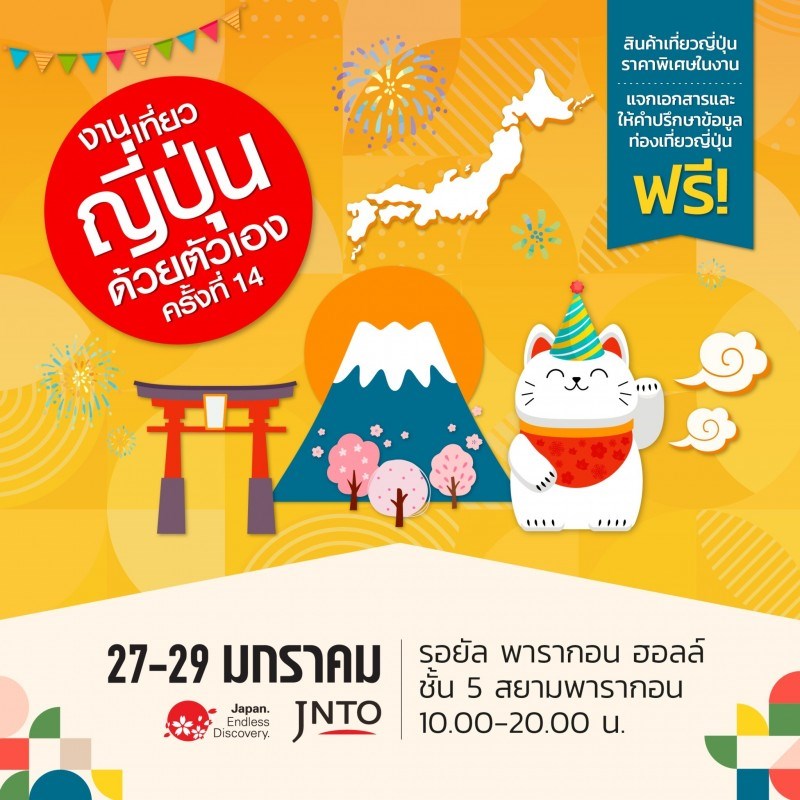"งานเที่ยวญี่ปุ่นด้วยตัวเอง 2023" (Visit Japan FIT Fair 2023) ครั้งที่ 14 JNTO เตรียมจัดงานส่งเสริมการขาย รวบรวมผู้ประกอบการท่องเที่ยว ผู้ประกอบการจากญี่ปุ่น องค์การส่งเสริมการท่องเที่ยวของแต่ละท้องถิ่นในญี่ปุ่น มาร่วมออกงานกว่า 100 บูธ พบกันวันที่ 27 - 29 ม.ค. 2566 ณ รอยัล พารากอน ฮอลล์ ศูนย์การค้าสยามพารากอน