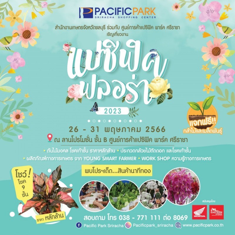 สำนักงานเกษตรจังหวัดชลบุรี ร่วมกับศูนย์การค้าแปซิฟิค พาร์ค ศรีราชา ชวนเที่ยวชมงานแปซิฟิค ฟลอร่า 2023 เลือกซื้อพันธุ์ไม้สวย และสินค้าทางการเกษตร จากเจ้าของสวนโดยตรง ภายในงานพบกับ