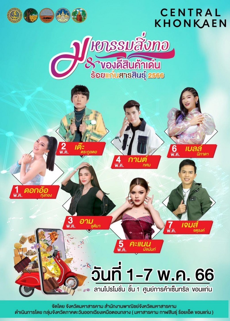 พร้อม INFLUENER ยอด HIGH FOLLOW UP กิจกรรมเจรจาธุรกิจ กับผู้ผลิตผู้ประกอบการโดยตรง Workshop สร้างสรรค์ งานฝีมือด้วยตัวคุณเอง สาธิตการปรุงอาหารจากเชฟจากัวร์ ซื้อครบตามจำนวน รับทันทีคูปองลุ้นรางวัล ช้อป ชม ชิม กันแบบจุใจ จัดโดย สำนักงานพาณิชย์จังหวัดมหาสารคาม
