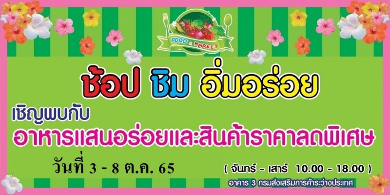 วันที่ 3 - 8 ตุลาคม 2565 ณ ศูนย์อาหาร กรมส่งเสริมการค้าระหว่างประเทศ