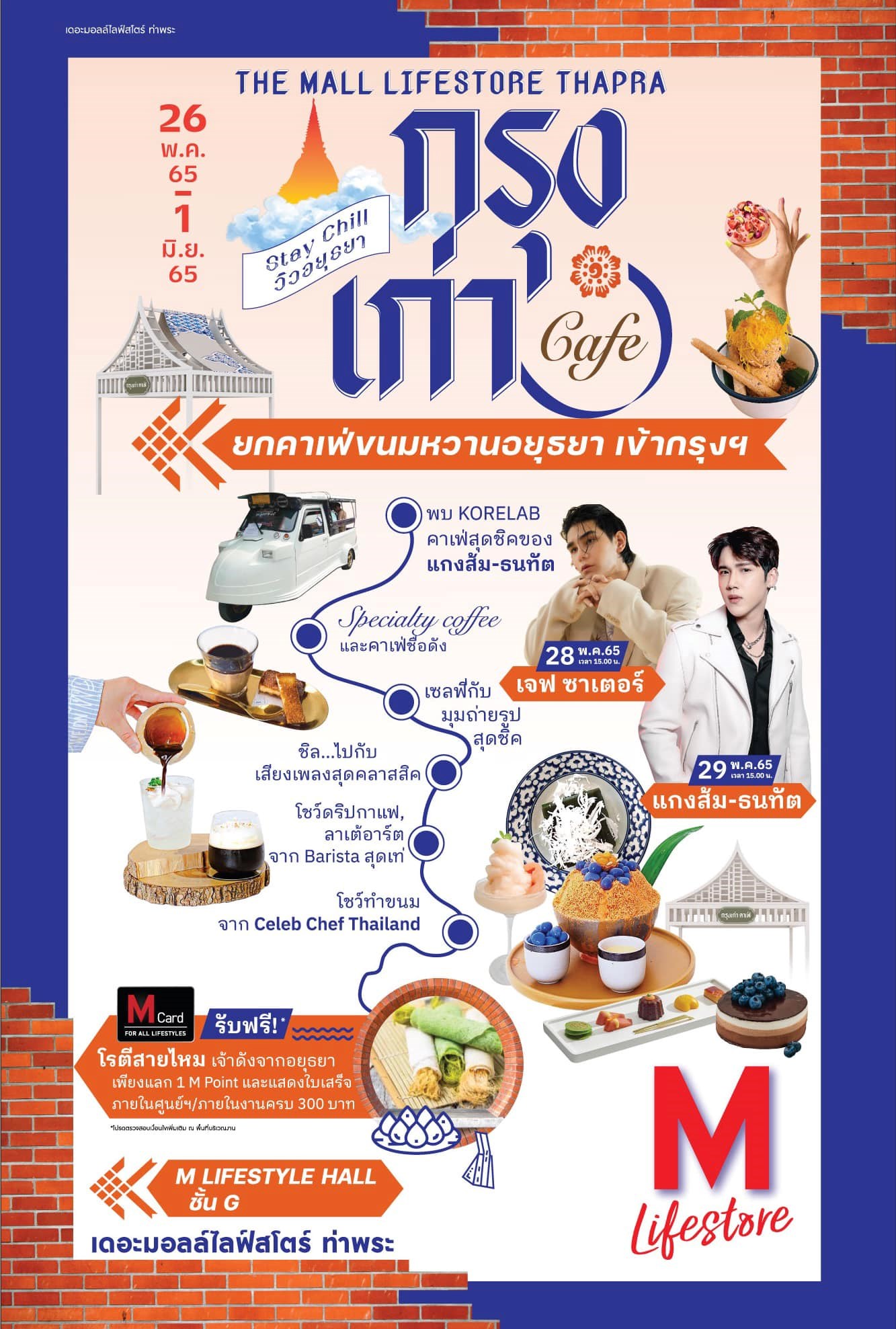 อย่าลืมหยิบมือถือมาถ่ายรูปเก๋ๆสไตล์กรุงเก่า ไว้โชว์ให้เพื่อน ๆ ได้อิจเบา ๆ พิเศษมินิคอนเสิร์ตจาก เจฟ - ชาเตอร์ 28 พ.ค. 65 มินิคอนเสิร์ตจาก แกงส้ม - ธนทัต 29 พ.ค. 65