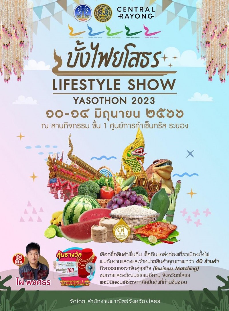 ขอเชิญน้องพี่ชาวระยอง มาม่วนซื่นโฮแซวกัน ในงานบั้งไฟยโสธร... Lifestyle Show : YASOTHON 2023 เลือกซื้อสินค้าพื้นถิ่น เช็คอินถิ่นพญาแถน แดนบั้งไฟโก้ ยโสธร ในราคาโปรโมชั่นพิเศษ คุ้มกว่าใคร