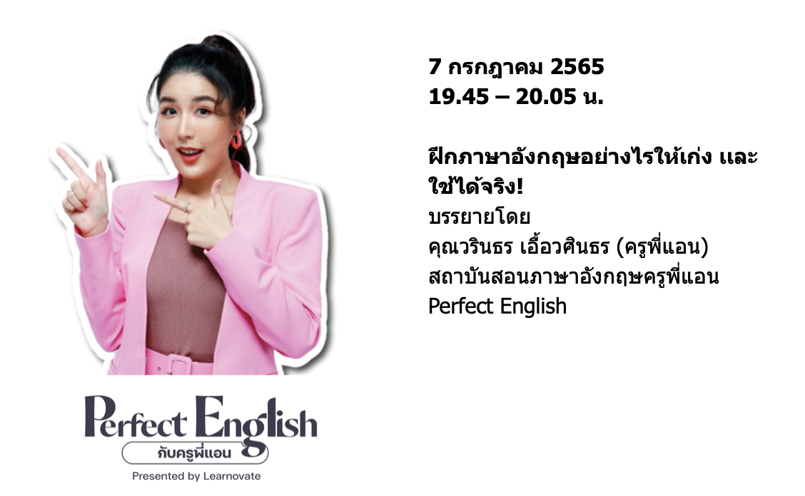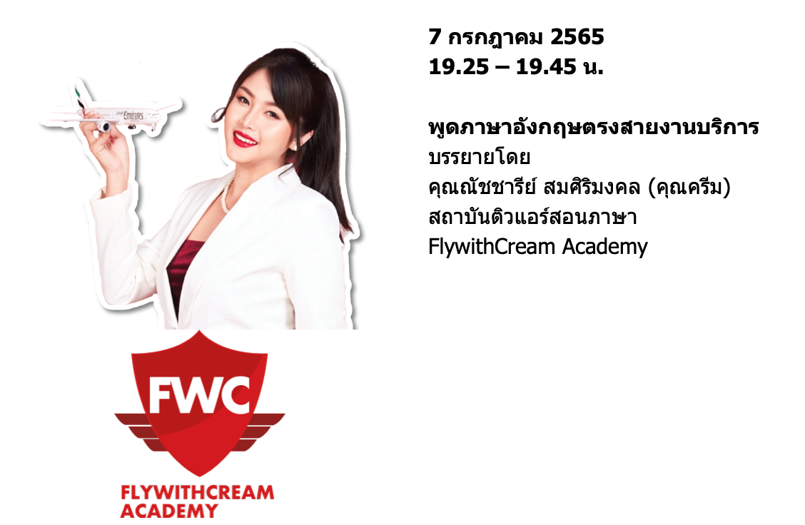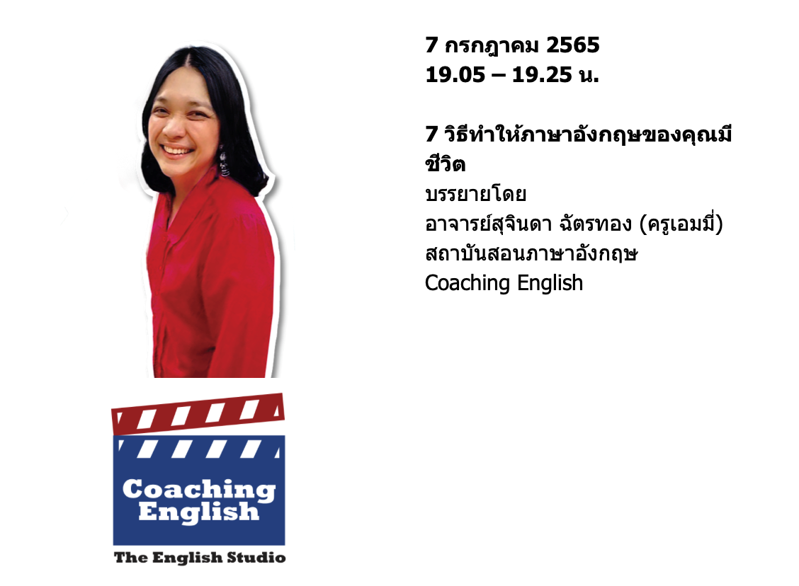 สัมนนาออนไลน์ "พูดภาษาอังกฤษจริตแบบสาย ฝอ" (บรรยายภาษาไทย) ในวันที่ 7 กรกฎาคม 2565 เวลา 19.00 - 20.15 น. ผ่านแอปพลิเคชั่น ZOOM คลิก! เพื่อลงทะเบียน
