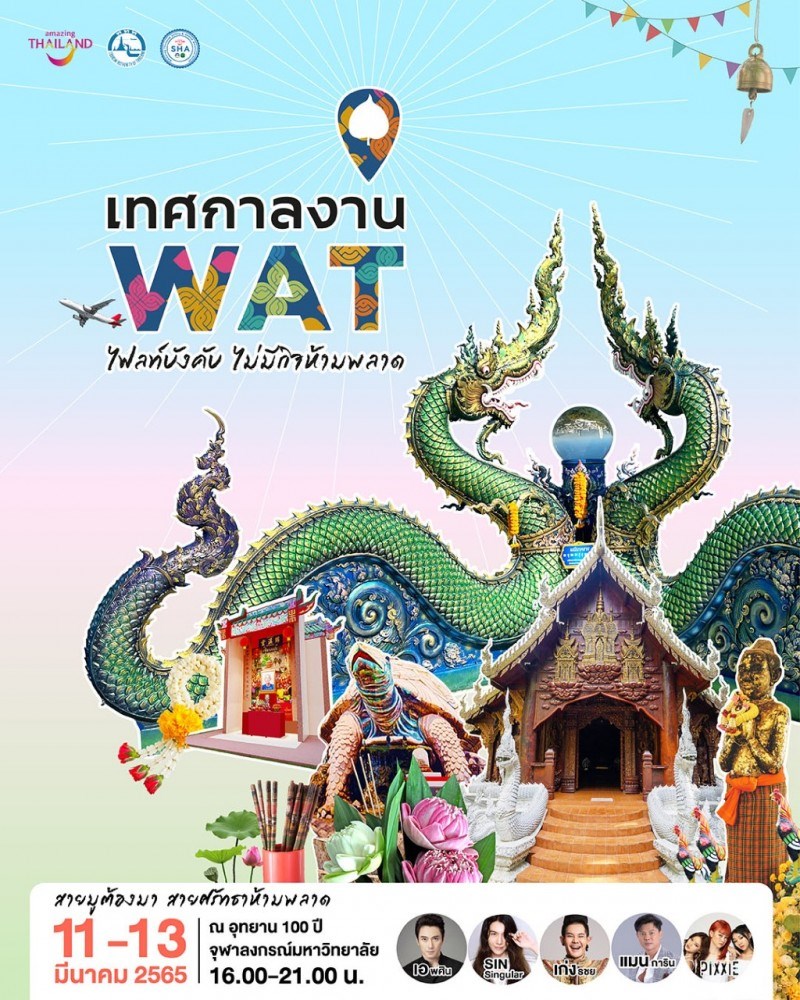 สายมูต้องมา สายศรัทธาห้ามพลาด ในงาน "เทศกาลงาน WAT ไฟลท์บังคับ ไม่มีกิจห้ามพลาด" รวมพลังศรัทธา-ครบ-จบในงานเดียว ณ อุทยาน 100 ปี จุฬาลงกรณ์มหาวิทยาลัย (ซอย จุฬาลงกรณ์ 5) ระหว่างวันที่ 11 - 13 มีนาคม 2565 นี้