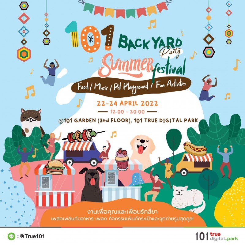 22-24 เมษายน นี้! ตั้งแต่ 12.00 - 20.00 น. ที่ชั้น 3 โซน 101 Garden พบกันที่ 101 Backyard Party อีเว้นท์ต้อนรับซัมเมอร์ในธีม "Summer Festival" ให้คุณได้เพลิดเพลินกับหลากหลายอาหารและกิจกรรมเพื่อคุณ ครอบครัว และสัตว์เลี้ยง ท่ามกลางบรรยากาศสวนพร้อมฟังเพลงสุดชิล