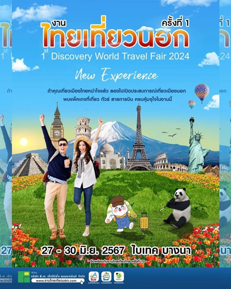 บริษัท พี.เค. เอ็กซิบิชั่น แมนเนจเม้นท์ จำกัด ยินดีต้อนรับท่านสู่งานไทยเที่ยวนอก ครั้งที่ 1 หรือ 1st Discovery World Travel Fair 2024 ระหว่างวันที่ 27 - 30 มิถุนายน 2567 เวลา 10.00 - 21.00 น. ณ ไบเทค บางนา โดยจัดขึ้นพร้อมกันกับงานไทยเที่ยวไทย ครั้งที่ 70 (70th Discovery Thailand Travel Fair 2024) รวมเป็นงานแสดงสินค้าด้านการท่องเที่ยวครั้งยิ่งใหญ่ที่สุด โดยมีผู้ประกอบการท่องเที่ยวจากทั้งในและต่างประเทศ มานำเสนอโปรโมชั่น ลดราคาพิเศษตลอด 4 วัน ได้แก่ บริษัททัวร์ชั้นนำ องค์การส่งเสริมการท่องเที่ยว (NTO’s) สายการบิน เรือสำราญ โรงแรม และสินค้าการท่องเที่ยวอื่น ๆ สามารถเข้าชมงานฟรี!