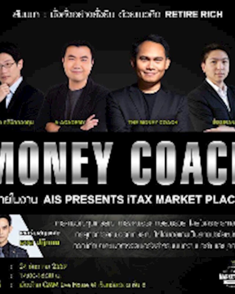 AIS Presents iTAX Market Place ขอเสนอสัมนาพิเศษจาก THE MONEY COACH จักรพงษ์ เมษพันธุ์ กูรูการเงินที่จะมาช่วยให้คุณรวยขึ้นอย่างง่ายๆ ด้วยรายได้ที่เท่าเดิม จากการจัดพอร์ตการเงินอย่างเป็นระบบ 23 – 25 ธ.ค. 59 จัดเต็ม 3 วัน ณ เมืองไทย GMM Live House Central World ชั้น 8 บัตรราคา 590 บาทต่อวัน